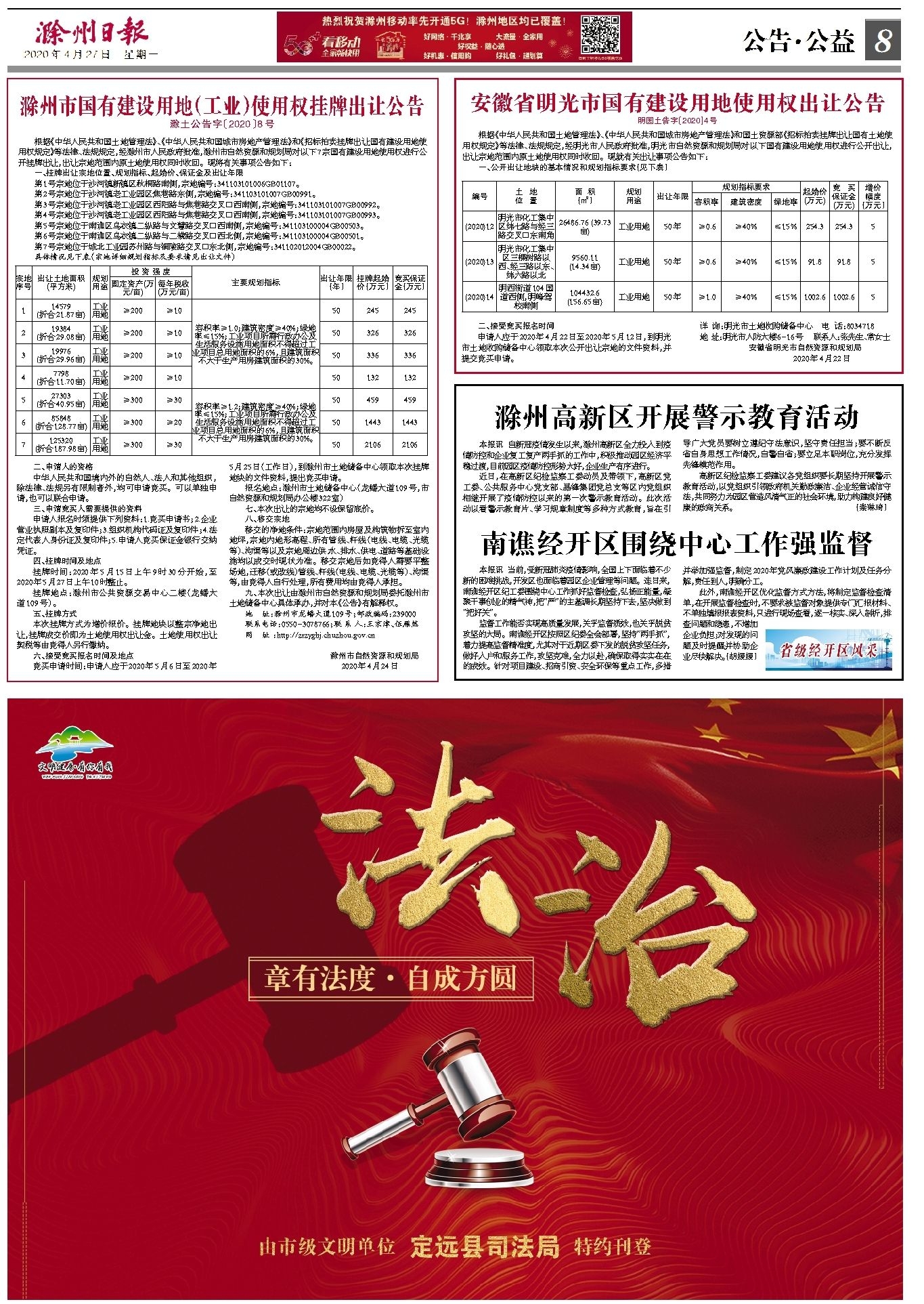 滁州市国有建设用地(工业)使用权挂牌出让公告