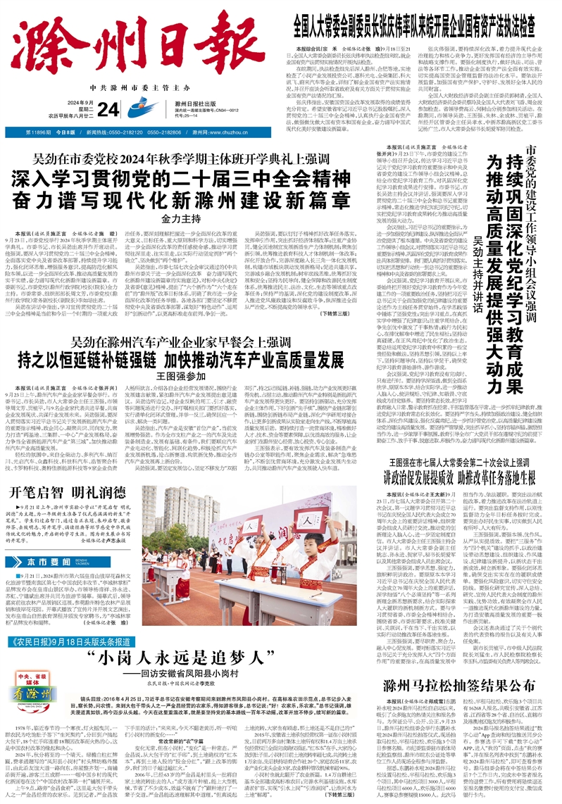 深入学习贯彻党的二十届三中全会精神 奋力谱写现代化新滁州建设新篇章