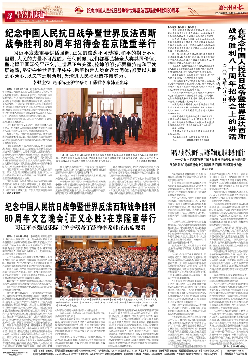 纪念中国人民抗日战争暨世界反法西斯战争胜利 80周年文艺晚会《正义必胜》在京隆重举行