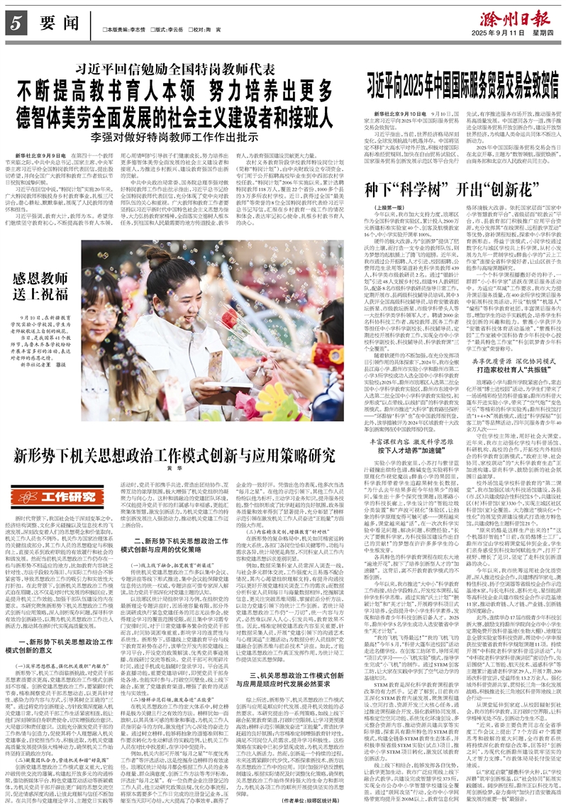 不断提高教书育人本领 努力培养出更多 德智体美劳全面发展的社会主义建设者和接班人