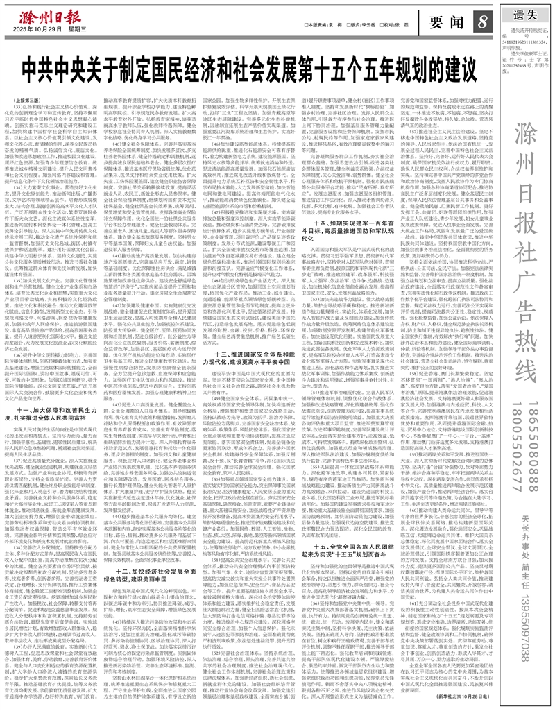 中共中央关于制定国民经济和社会发展第十五个五年规划的建议