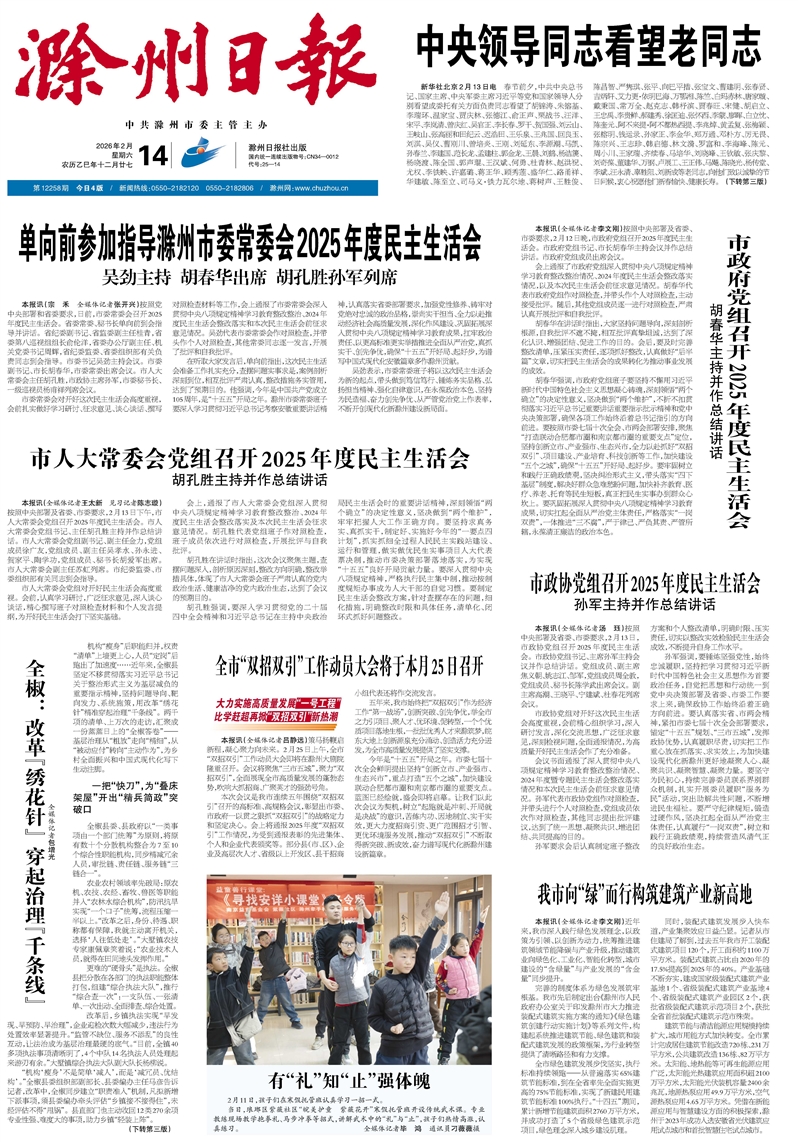单向前参加指导滁州市委常委会2025年度民主生活会