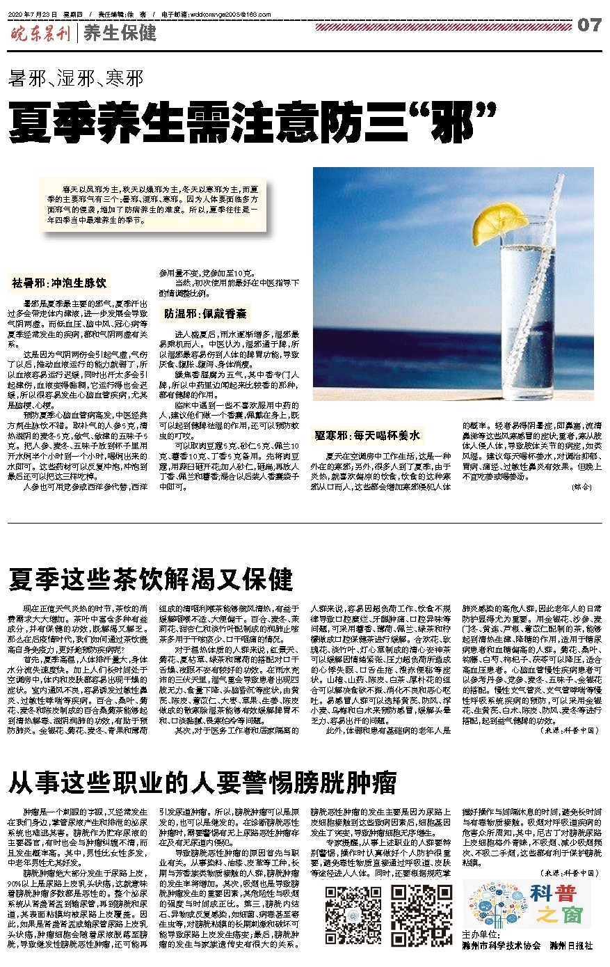 夏季养生需注意防三“邪”