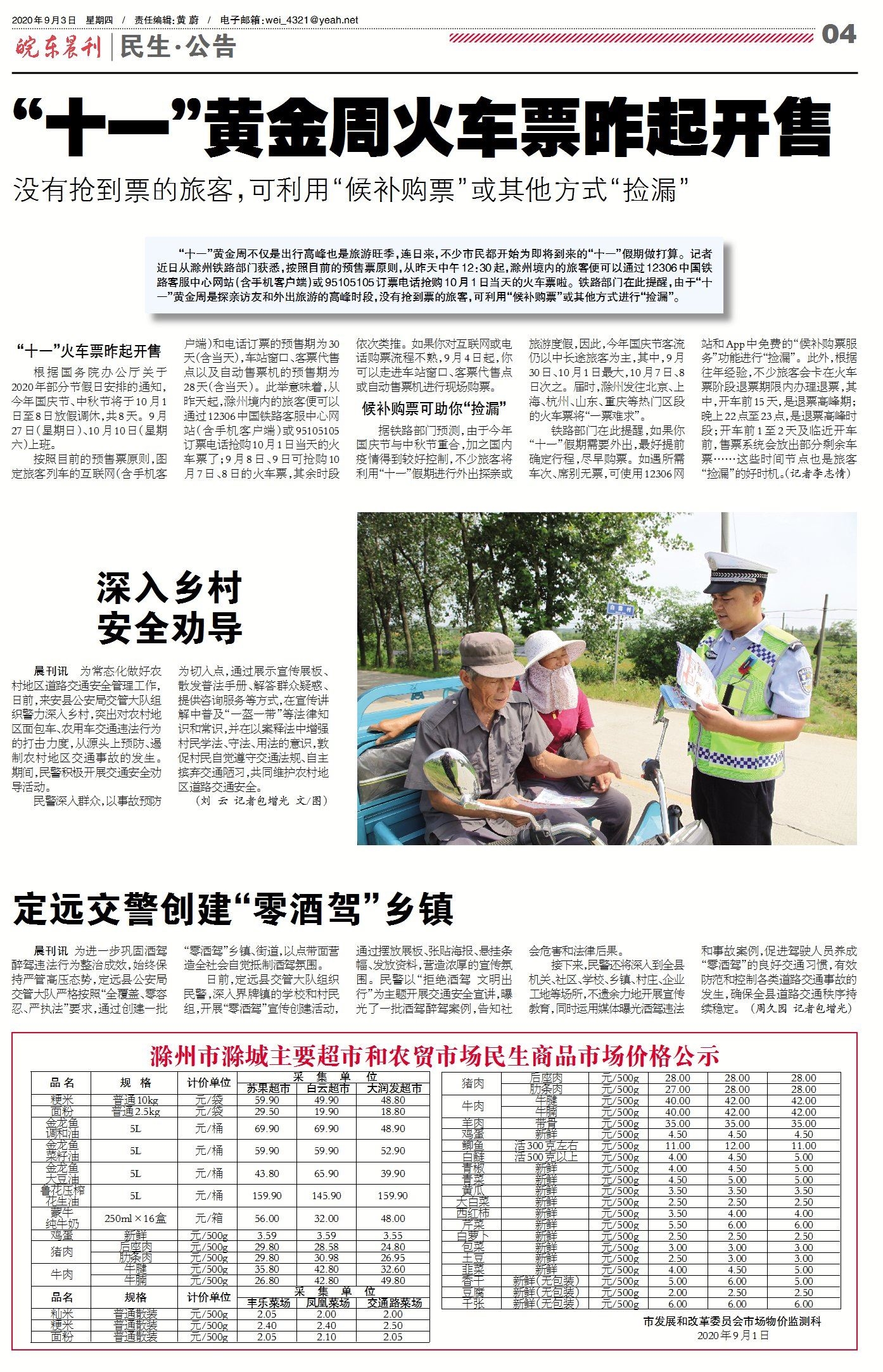 滁州市滁城主要超市和农贸市场民生商品市场价格公示