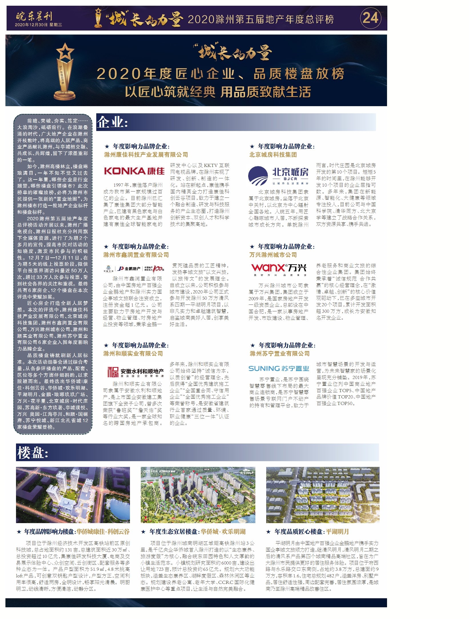 第A24版:2020滁州第五届地产年度总评榜